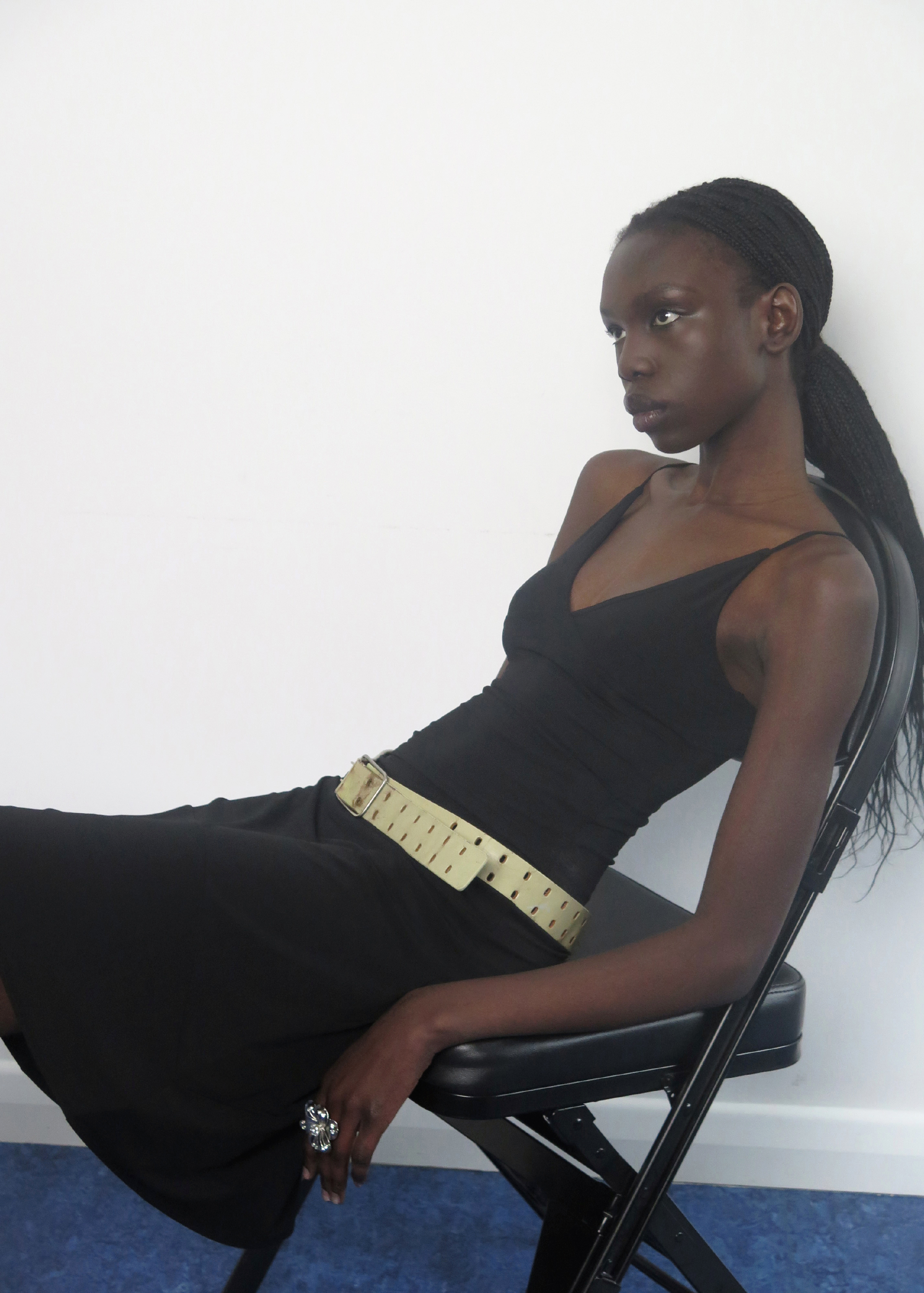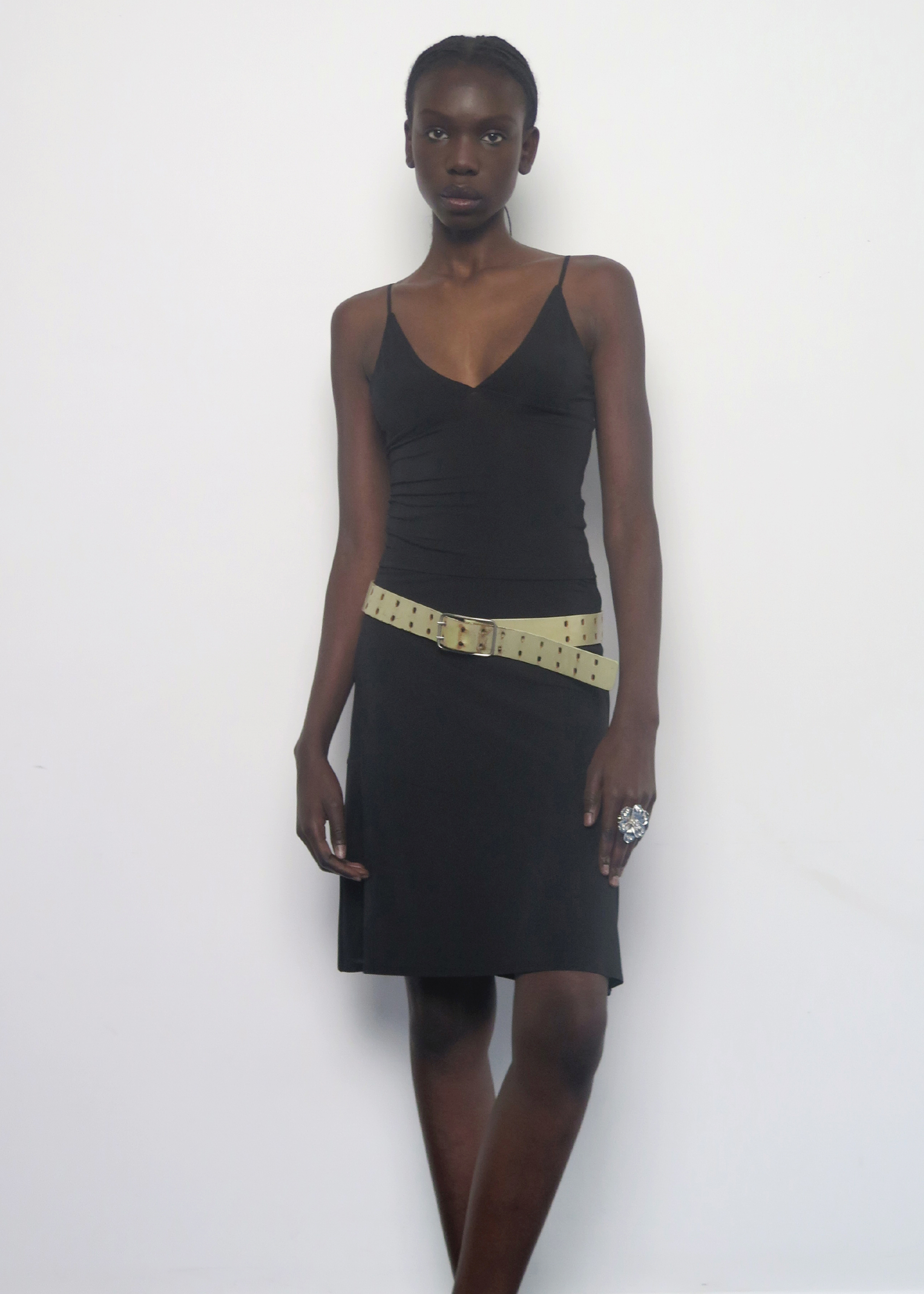 Fitted singlet featuring a low V-neck and clean, minimalist finish, in slinky black knitted jersey.