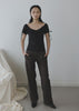 The Orbit Top features gathered detailing with delicate bows throughout, and a slightly flared cropped hem. Bias cut in technical Japanese fabric, see colour shifting throughout the textured surface as you move.
