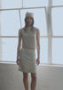 The Refract Skirt is a minimalist structured silhouette, featuring a clean wide waistband with hidden back pockets. Crafted in Japanese recycled nylon, a technical fabric that plays with the light around the garment, adding dimension and texture.